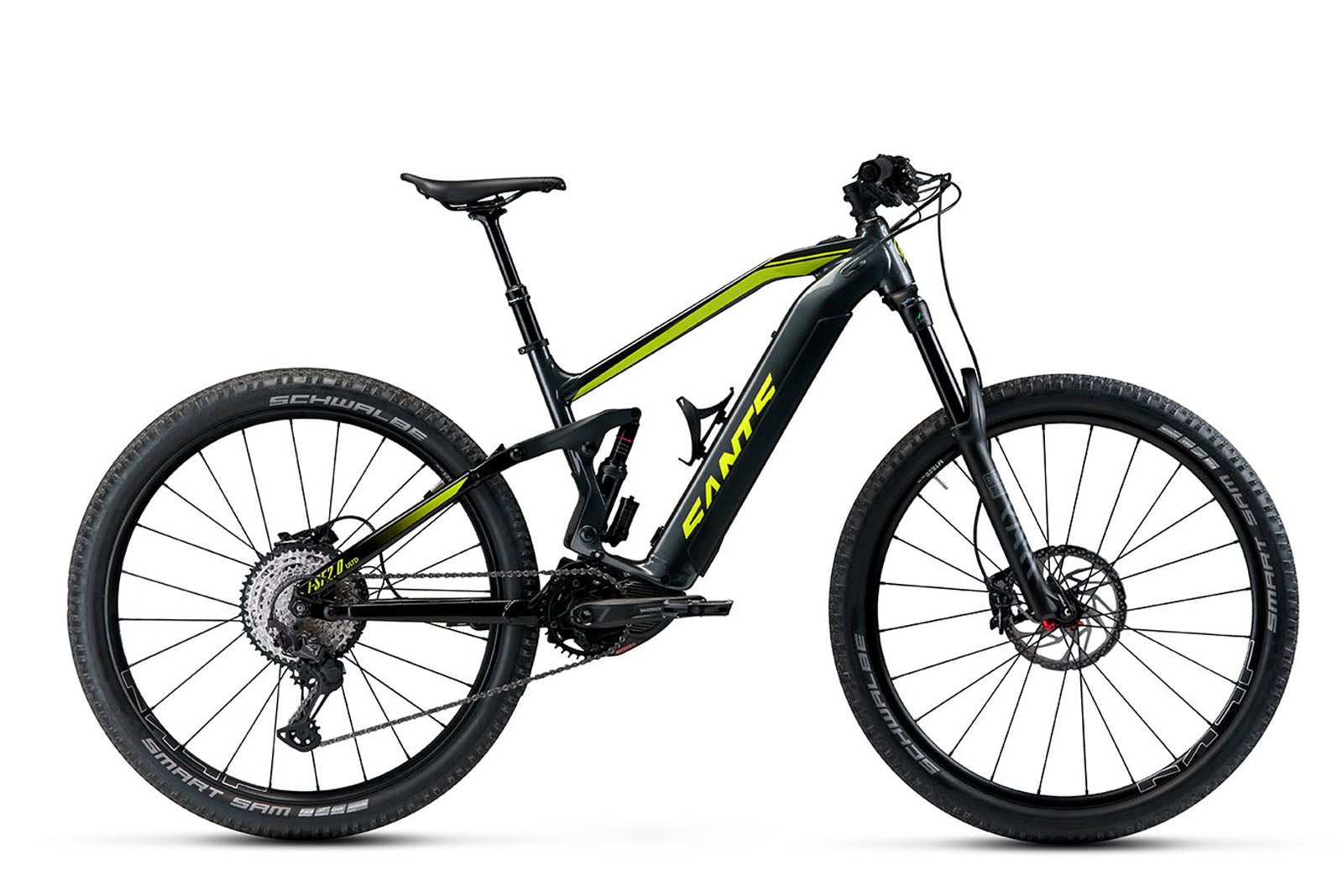 Migliora la tua esperienza in mountain bike con la potente ed efficiente E-MTB FULL SANTS. Con 630 watt di potenza del motore SHIMANO STEPS EP800 e una batteria SIMPLO G2 da 630 WH, conquisterai qualsiasi terreno con facilità e controllo. Il rapporto a 12 velocità di SHIMANO ti permette di affrontare sia le salite più ripide che le discese più tecniche con sicurezza e precisione.